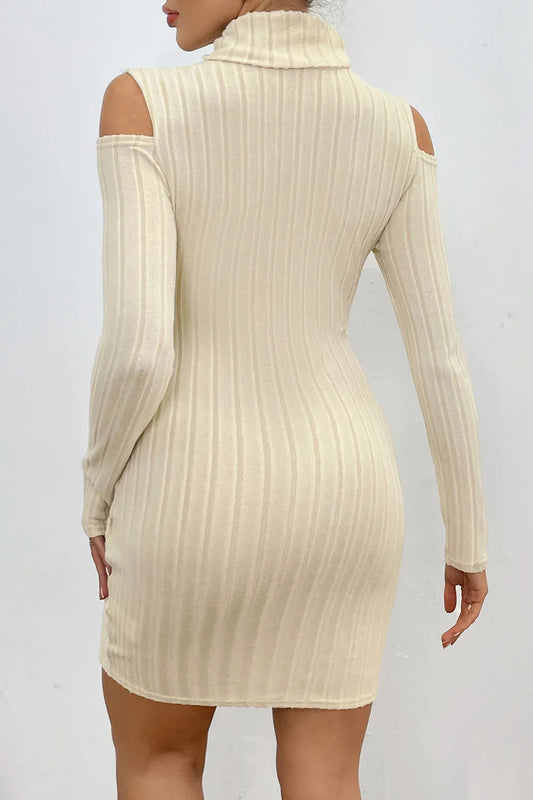 Ribbed Turtleneck Cold Shoulder Long Sleeve Mini Dress